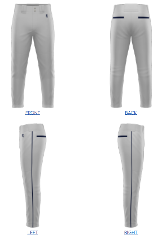 - Performance full length tapered baseball pant with custom PG branded gripper waistband