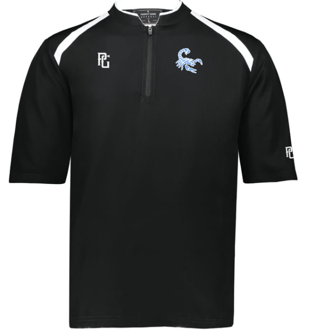 - Quarter zip pullover style with zipper garage